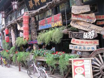 這家酒吧也對外供應午餐,據(jù)說大廚是平遙最著名的星級飯店的主廚,戴著雪白的像蛋糕一樣高高的帽子。一碗刀削面要十元,比青島的價格還要高出兩三元,如果加雞蛋還要另加五元。我們幾個都不喜歡吃雞蛋,當即要了四碗不加雞蛋的。端上來后,湯醇面白,確實美味。這時對面兩位要了兩碗加雞蛋的,我們一看這雞蛋大吃一驚,竟然就是兩個剝了皮的茶葉蛋!五元買倆茶葉蛋?。】峙率侨珖钯F的茶葉蛋了。剛開始我們還以為是煎雞蛋呢。吃到一半,感覺湯太少面太干,于是問服務員要兩碗湯。“我們這里的湯是收費的。”真驚了,連碗面條湯都要收費,不喝了!