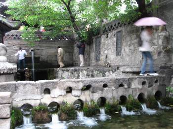 在晉祠門口下車,外面的雨更密了,呼呼的冷風夾裹著綿密的細雨把我們包圍。由于所帶現(xiàn)金不多,或者說平遙的消費水平超乎想象,單是停一次車就要十元,幾天下來身上的銀子早已花光,到了晉祠門口只得先去取錢,于是我們兵分兩路,兩個人去取錢,兩個人先去晉祠門口等著。
